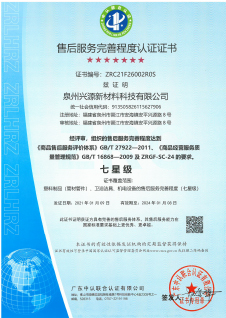 售后服務七星認證證書